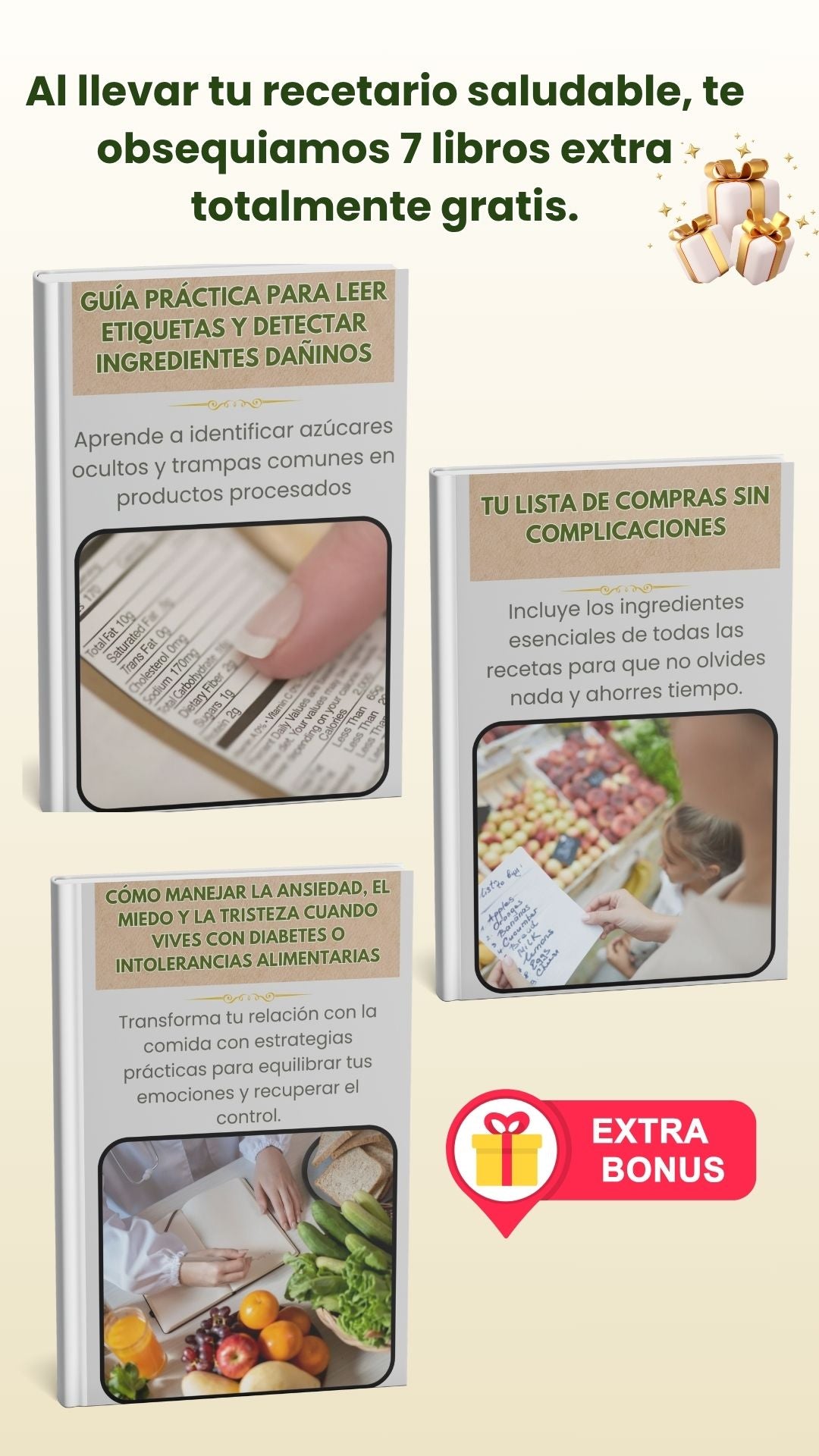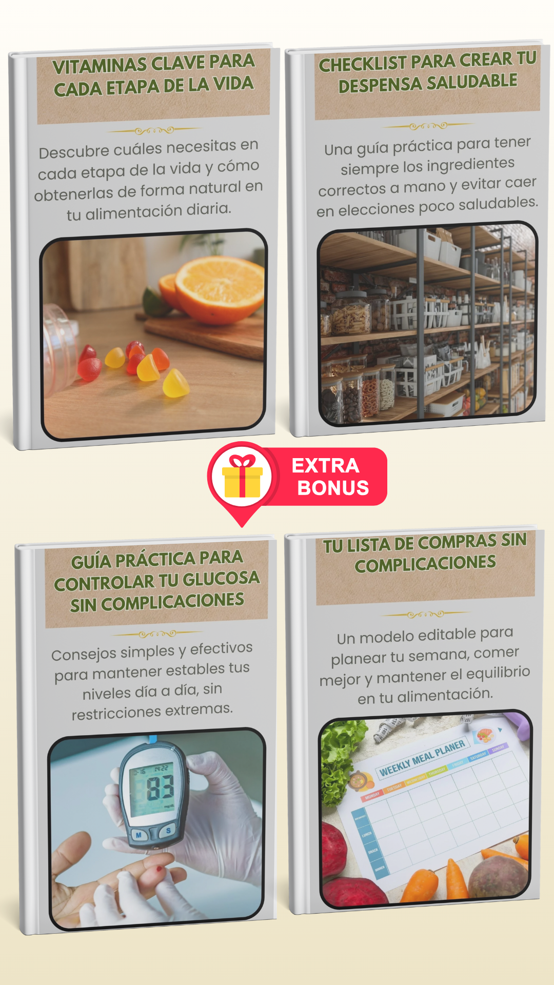 Así como comer sano no es un sacrificio, probar este libro tampoco lo será. Si en 7 días no estás convencido, te damos acceso a material extra exclusivo para que no te quedes sin transformar tu alimentación