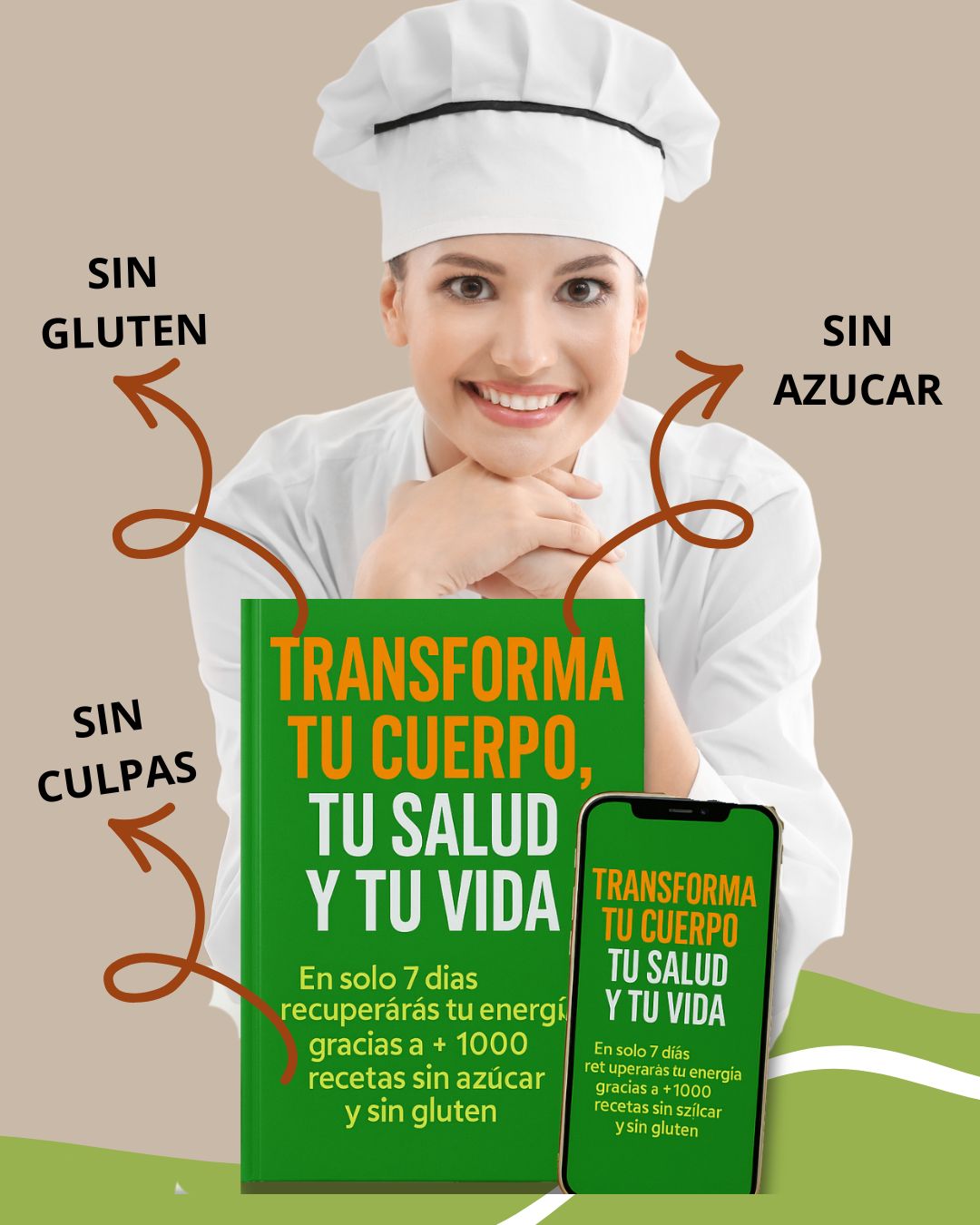 Transforma tu cuerpo, tu salud y tu vida con +1000 recetas sin azúcar y sin gluten.